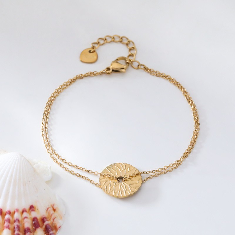 Bracelet double chaîne forçat reliée à un disque martelé