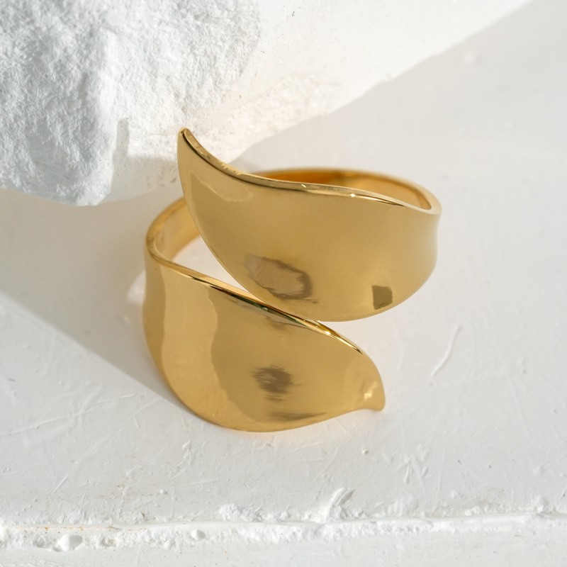 BAGUE EPAISSE DOREE POINTES EN FEUILLE CLOE