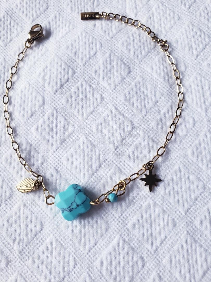 Bracelet pierres naturelles quartz rose ou trèfle onyx ou turquoise