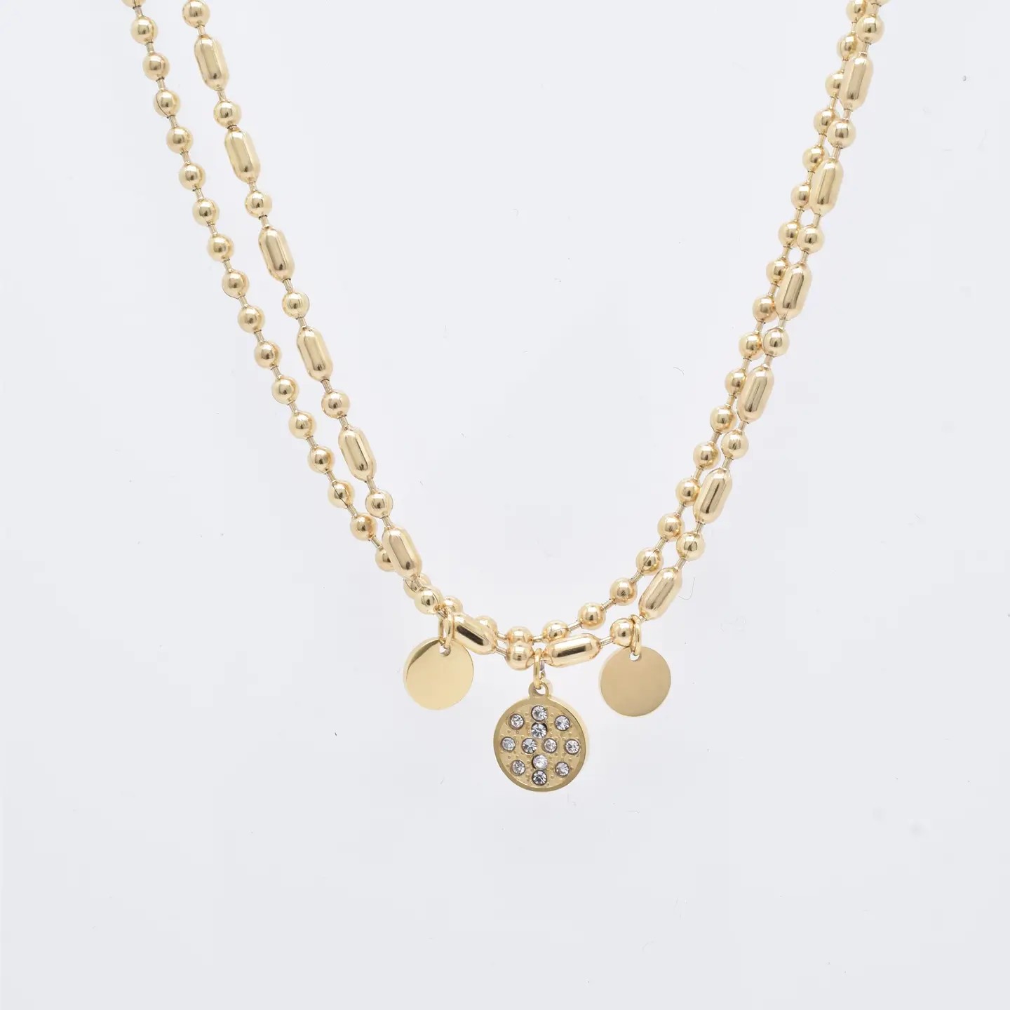 L'autre rang petites boules allongées. Au centre, une pastille avec cristaux et deux pastilles lisses