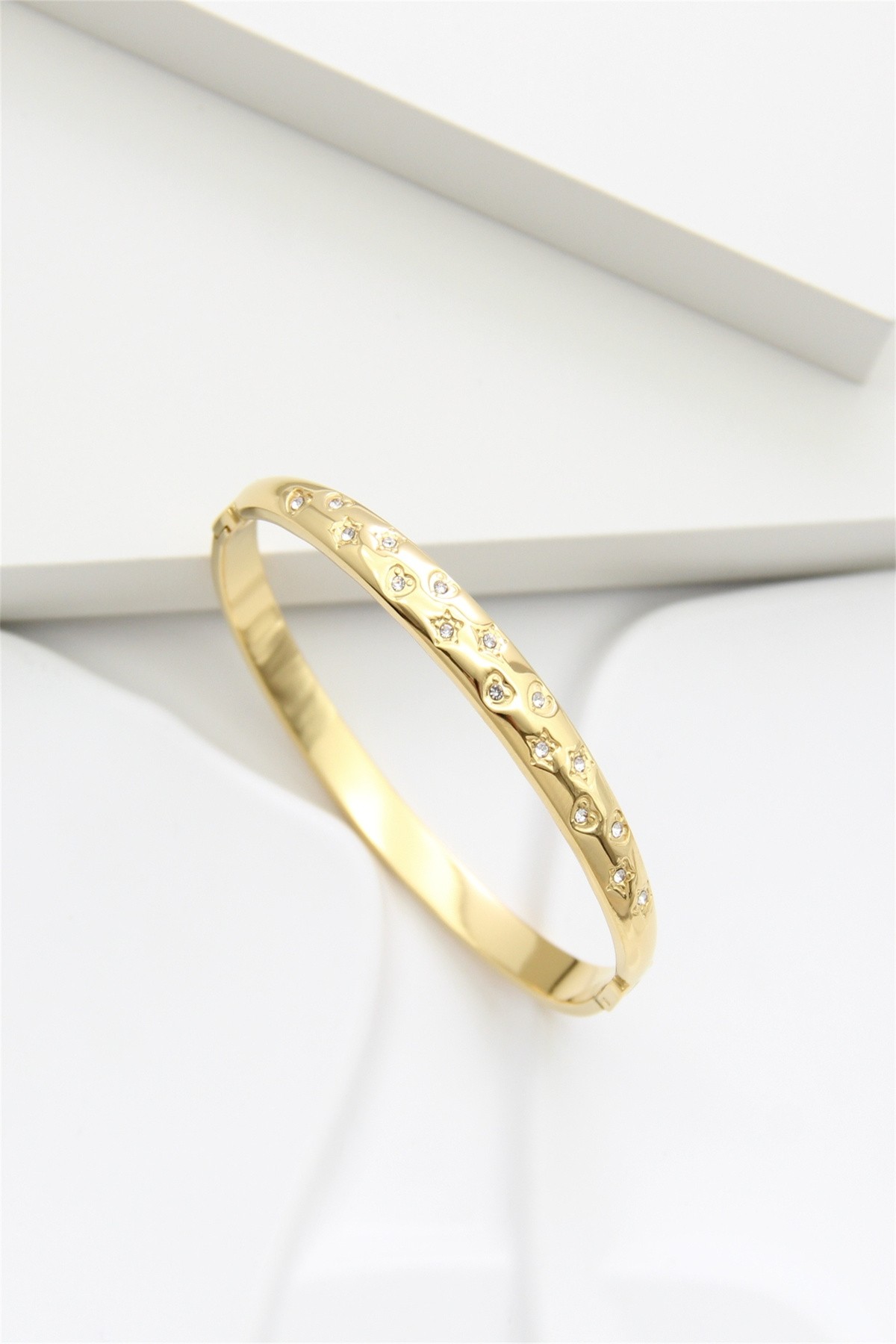 Bracelet jonc doré acier inoxydable étoilé avec strass