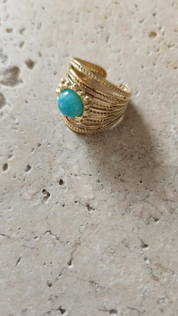 Bague acier dorée réglable multi rang pierres naturelles amazonite