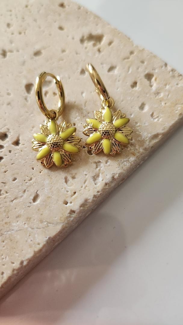 Boucles d'oreilles fleur jaune pendante