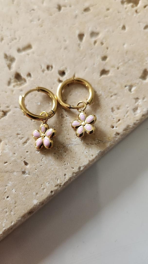 Boucle d'oreilles fleur rose pendante