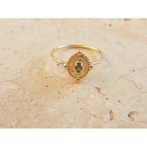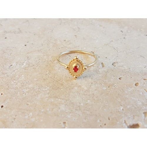 Bague plaqué or 3 microns ovale perlée pierre de lune, pierre rouge ou verte